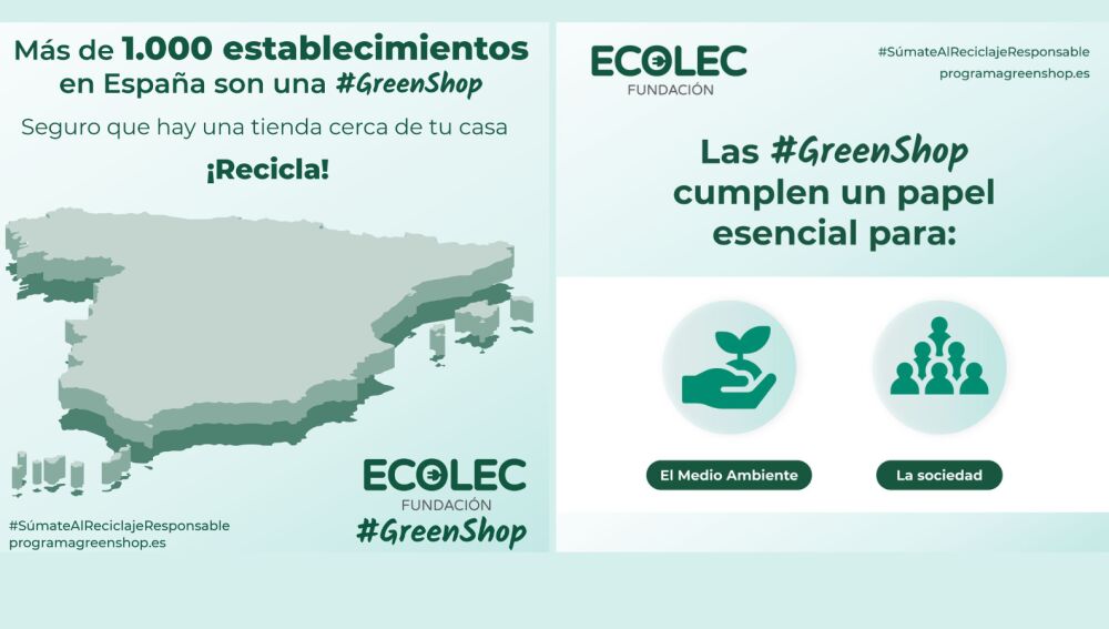 Es muy fácil saber dónde están las #GreenShop. Contamos con un buscador en https://ecolec.es/greenshop/ en el que se encuentran todos los establecimientos. Hay más de 1.000 comercios en 16 comunidades autónomas. También se pueden reconocer en la calle ya que estos espacios tienen un distintivo blanco visible que los reconoce como #GreenShop. Esta amplia red de establecimientos permite a la ciudadanía tener siempre a mano una tienda de confianza en la que poder reciclar.