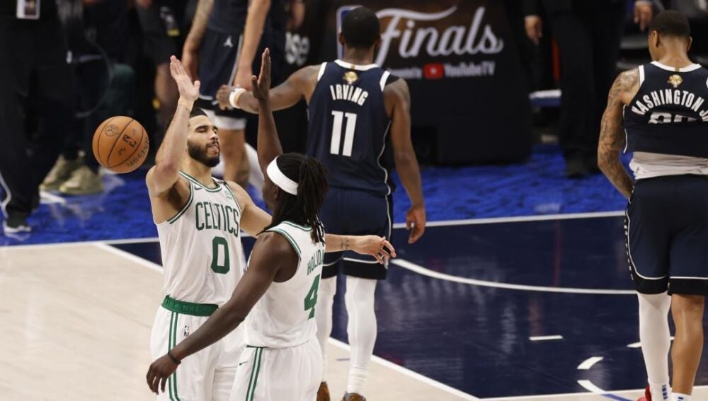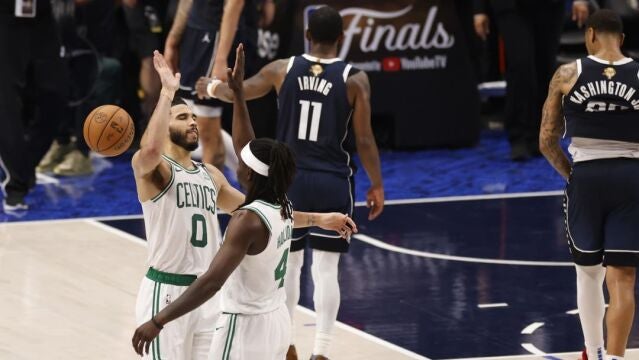 Los Celtics comenzaron la cuenta atrás para un título que esperan desde 2008 y que rompería el empate con Los Ángeles Lakers para volver a ser la franquicia más ganadora de la NBA. Tendrán su primera 'bola de partido' este viernes, de nuevo en el American Airlines Center. La baja del letón Kristaps Porzingis no frenó a la todopoderosa máquina de Joe Mazzulla. Jayson Tatum, con 31 puntos, seis rebotes y cinco asistencias, y Jaylen Brown, con 30, lideraron la victoria de los Celtics frente a unos Mavericks en los que el esloveno Luka Doncic metió 27, pero acabó expulsado por cometer seis faltas con 4.12 minutos por jugar en el cuarto período.