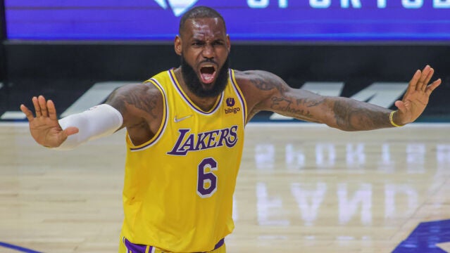 Un LeBron James lesionado tuvo que ver desde el banquillo la séptima derrota consecutiva de su equipo. Esta temporada será la cuarta que el jugador se queda sin "playoffs", la segunda desde que llegó a Los Angeles.