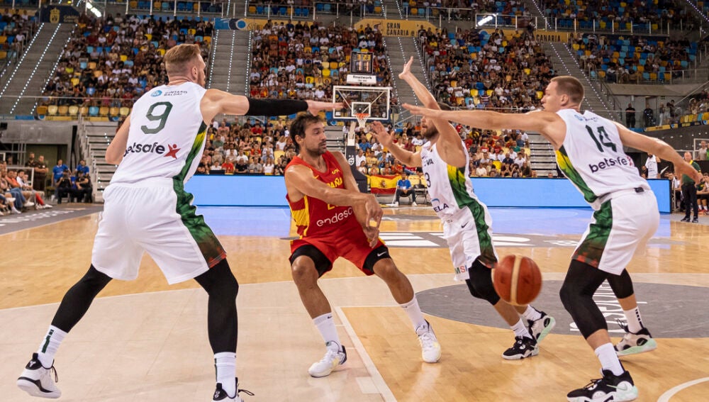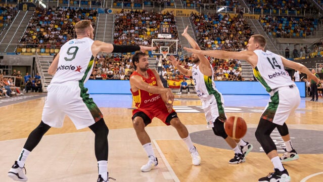 El contexto del enfrentamiento era el propicio para ver cómo eran capaces de desenvolverse los de Sergio Scariolo en una situación ligeramente adversa, por el precedente cercano que acabó con derrota (77-82) y porque no iban a estar disponibles, por descanso, dos hombres importantes como Willy Hernangómez y Rudy Fernández. Salió el cuadro anfitrión inmisericorde desde el perímetro, castigando a un rival desbordado que encajó hasta cuatro triples consecutivos. De ellos tres fueron de Giedraitis, quien hizo pleno de acierto en sus primeros intentos. Eso, más una canasta de Valenciunas, hizo que el marcador fuese 17-4 cuando ni siquiera se habían disputado cuatro minutos.