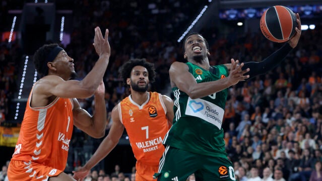Negado en el tiro de tres, en parte por la gran defensa helena, el conjunto 'taronja' aumentó su energía defensiva en la segunda parte y con las penetraciones de Omari Moore y de Kameron Taylor abrió una brecha en el entramado de Ergin Ataman pero no fue suficiente para desmontarlo. En este punto de la galaxia del baloncesto europeo, al que el Valencia no llegaba desde hacía 15 años y en el que solo dos de los suyos tenían experiencia, hace falta todavía algo más. Diez puntos casi seguidos de Nunn desbrozaron ya el primer tramo del camino del Panathinaikos, dieron confianza equipo griego y descolocaron a un Valencia Basket poco acostumbrado a ir a remolque. Dubitativos, los locales firmaron un 1/11 en sus primeros triples.