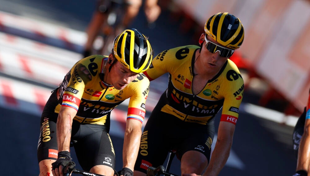 Según el parte firmado ayer por los médicos de carrera tras la caída, el triple ganador de la Vuelta sufría "policontusiones, heridas superficiales en codo, cadera y rodilla del costado derecho que han precisado de curas locales". Unos problemas físicos que finalmente han obligado a Roglic a retirarse.