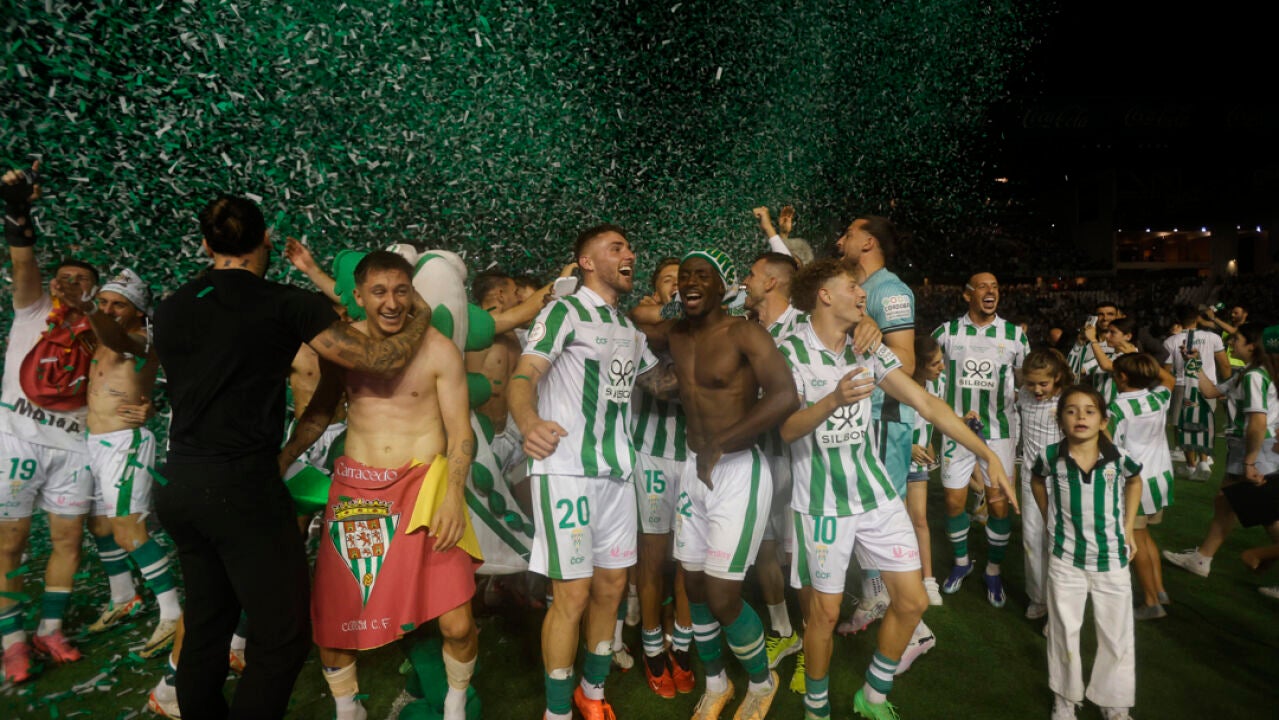 Aún hubo tiempo para un último acercamiento peligroso por parte de los culés, pero un inconmensurable Lapeña se fue al suelo justo en el momento adecuado, sacando dos balones clarísimos de gol para arrancar una sonora ovación en El Arcángel. Así, los siete minutos de tiempo añadido se cumplieron, poco a poco, entre tímidos cánticos y celebración comedida hasta que, con el pitido final, la fiesta se apoderara de El Arcángel y Córdoba entera disfrutase, de nuevo, de su equipo en Segunda División.