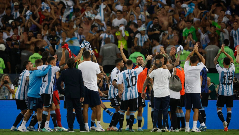 Como la policía fue incapaz de contener los ánimos, los jugadores argentinos, con Messi a la cabeza, se dirigieron en grupo hasta la tribuna sur del Maracaná para pedir calma a los aficionados e incluso el Dibu Martínez llegó a enfrentarse a la policía.