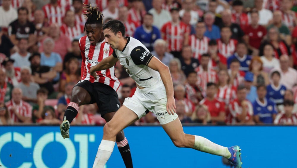Tras el descanso apenas varió el panorama. Si acaso el Athletic rebajó un punto la presión para reducir riesgos, pero ni aún así el Valencia acertaba a trenzar jugadas de cierto mérito que inquietaran a los locales. Pepelu apenas lograba entrar en juego y eso reducía notablemente las opciones de Hugo Duro y Rafa Mir, que acabó sustituido por Almeida.