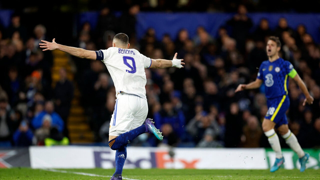 Benzema celebrando su tercer gol ante el Chelsea en Champions | Reuters