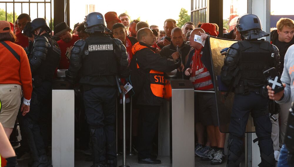 El caos que se vivió en la final de la Eurocopa en Wembley hace menos de un año se ha vuelto a vivir en las puertas del Stade de France. Robos a aficionados, saltos de vallas, agresiones y una alarmante falta de seguridad y control han llevado al retraso, de casi 36 minutos, de la final de la Champions, algo inédito en el fútbol moderno.