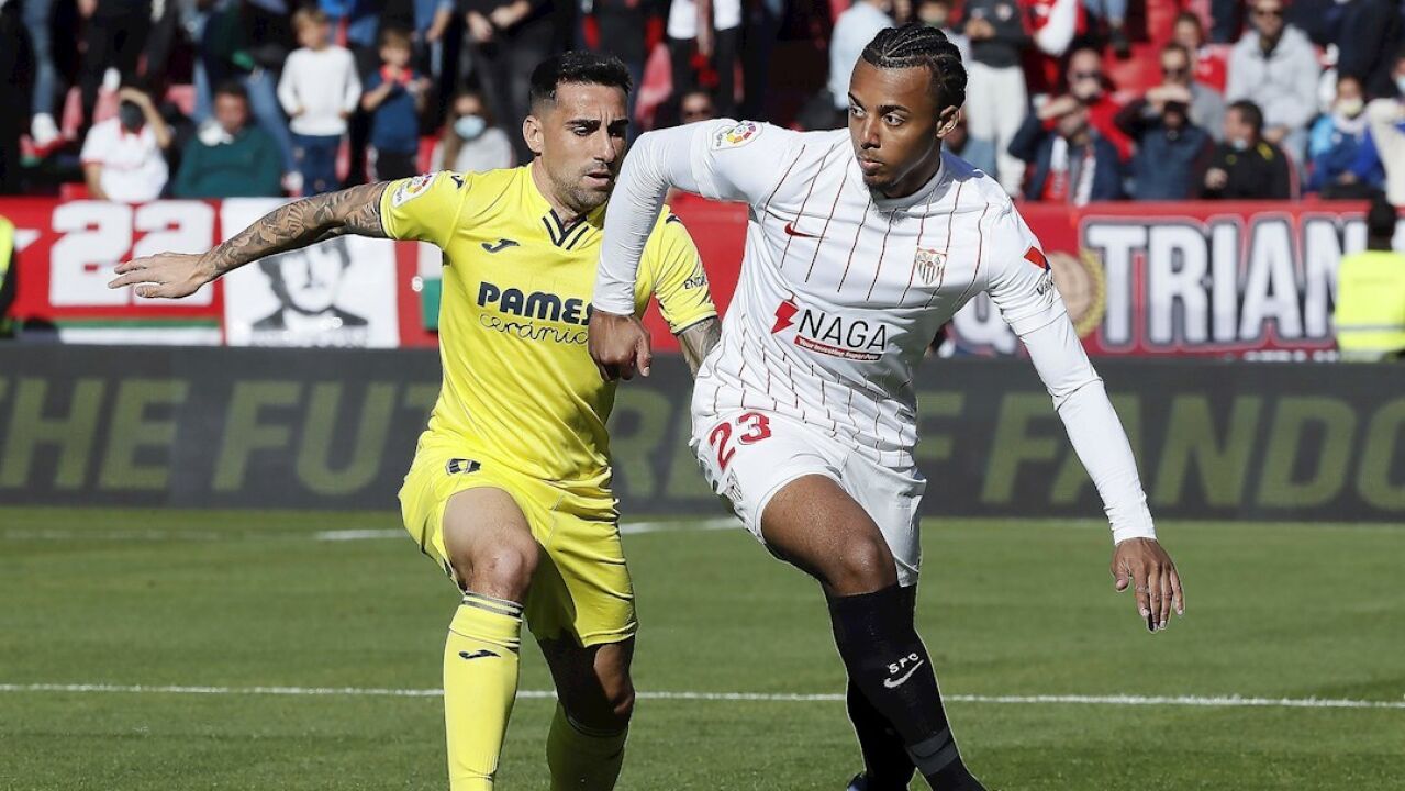 Alcácer y Koundé pelean un balón durante un Sevilla - Villarreal | EFE