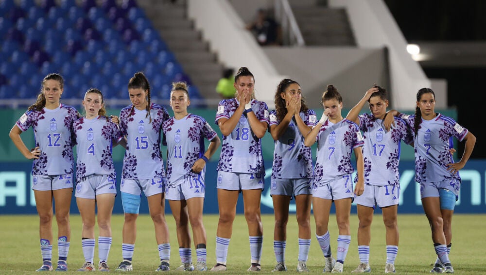España, arropada por el público del Estadio Félix Sánchez, de Santo Domingo, que llenó 18.410 butacas, empezó mejor situada que en las semifinales ante Inglaterra y en el primer minuto de partido tuvo la opción de ponerse por delante en el marcador, pero el mano a mano de Celia Segura fue detenido por Pak Ju Gyong. A partir de ahí, el encuentro entró en una espiral de interrupciones durante la primera media hora que favorecía a las norcoreanas, quienes se encontraban cómodas en ese ritmo lento. En el último cuarto de hora de la primera parte, las pupilas de Kenio Gonzalo volvieron a encontrar su ritmo de juego, y apoyadas por las llegadas de las laterales y sus grandes centros, Alba Cerrato cabeceó un balón que se fue alto por muy poco y Pau Comendador casi anota de media chilena tras un error en el despeje de la guardameta.