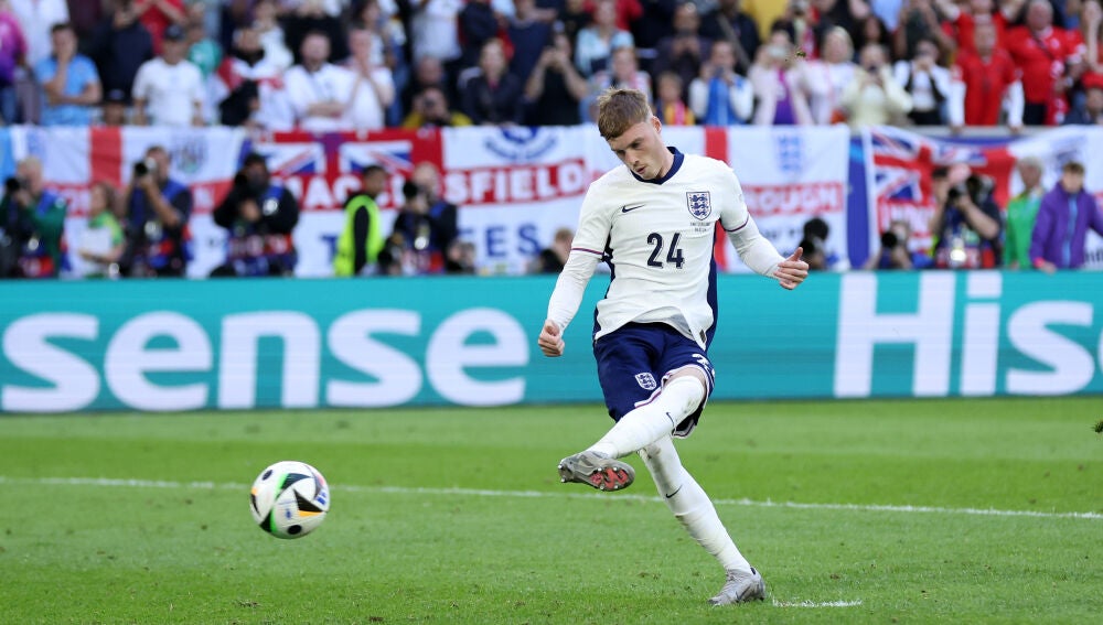 Cole Palmer de Inglaterra marca el primer penalti del equipo en la tanda de penaltis durante el partido de cuartos de final de la UEFA EURO 2024 entre Inglaterra y Suiza. | Getty Images
