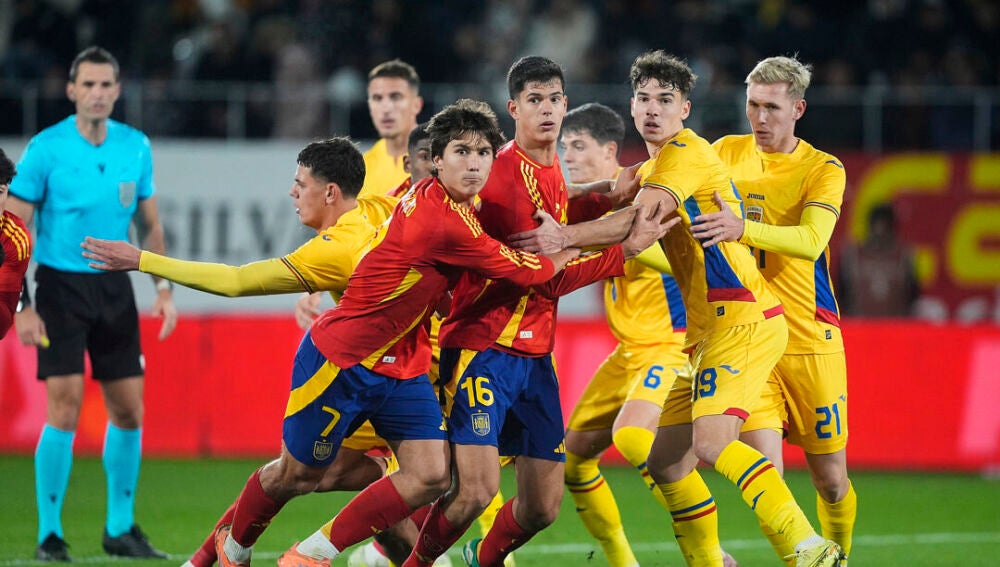 Controló el partido España hasta la primera media hora, cuando Rumanía dio un paso adelante, subió líneas y presionó alto. Y una de esas acciones provocó un error en la salida de balón, con un resbalón de Jacobo, en un terreno de juego lejos de las mejores condiciones por la lluvia, y Rumanía tuvo el empate en un disparo de Atanas Trică que Rodrigo Mendoza despejó a córner. Le vino bien el descanso a los de David Gordo para recomponerse y retomar el dominio del juego y la intensidad. Tanto que, siete minutos después de volver al campo, doblaron la ventaja.