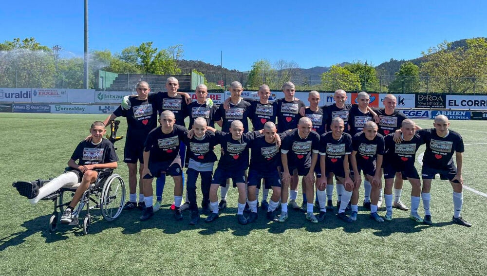 El gesto ha sido "muy agradecido" por su compañero y ha generado gran expectación entre los vecinos de la localidad. Compañeros de los equipos cadete B y C también se han rapado la cabeza en solidaridad con Urtzi.