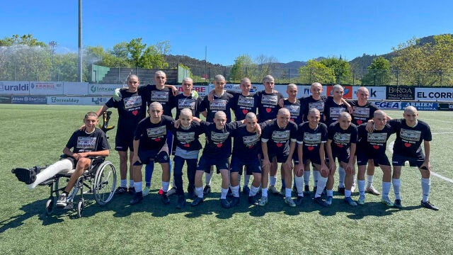 Un numeroso grupo de futbolistas adolescentes del SD Gernika Club, equipo de fútbol de la localidad vizcaína, se ha rapado la cabeza en solidaridad con un compañero con cáncer.