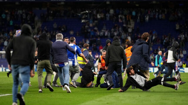 La policía y la seguridad del estadio han tenido que intervenir y se han producido disturbios en el césped y lanzamiento de objetos.