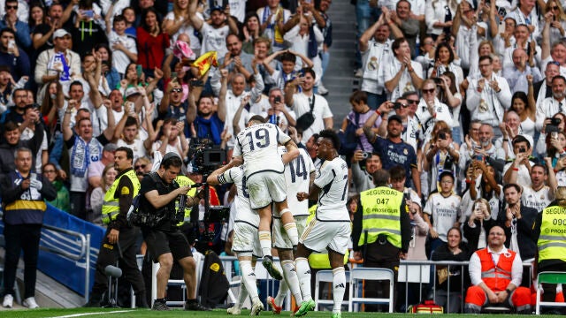 Los jugadores del Real Madrid se quedaron en el Santiago Bernabéu tras su triunfo ante el Cádiz para presenciar el partido del Barcelona en Girona, y a la conclusión, tras proclamarse campeones de LaLiga, celebraron juntos la conquista del título mientras que cientos de madridistas acudieron a la fuente de La Cibeles.