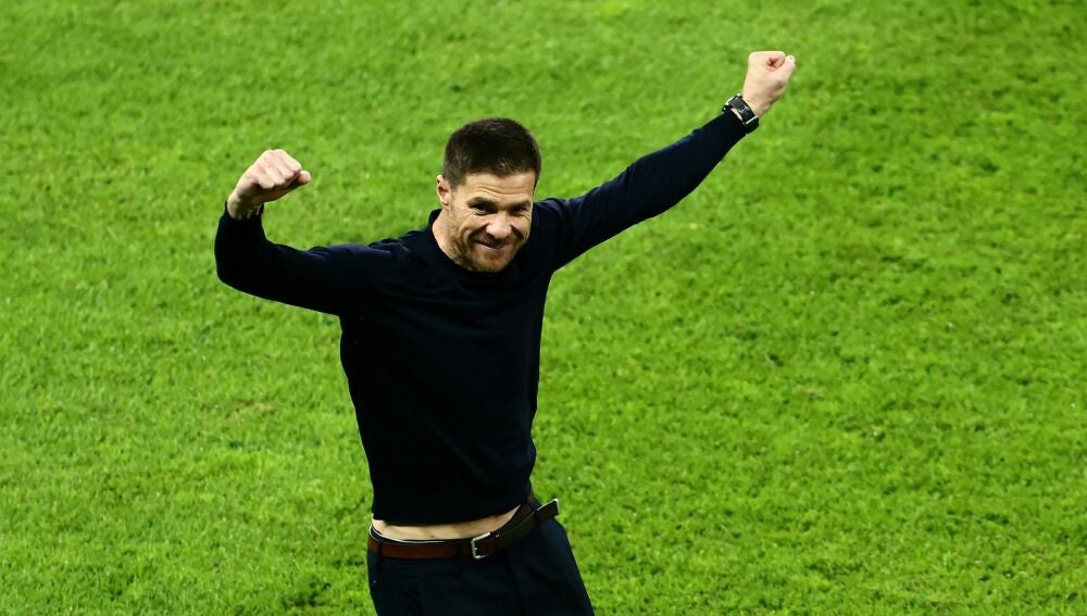 Xabi Alonso celebra el triunfo del Bayer Leverkusen. | EFE/EPA/HANNIBAL HANSCHKE
