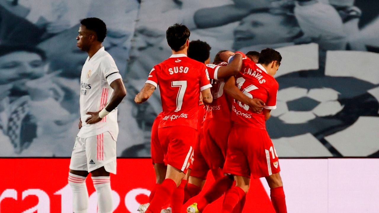 Reacción que pudo ser mayor un minuto más tarde en otro tiro lejano del brasileño Carlos Henrique Casemiro que se marchó rozando el palo izquierdo de la portería sevillista y que llegó tras verse por debajo en el marcador en el minuto 78 por un penalti señalado por el colegiado Juan Martínez Munuera (Comité Valenciano) y que pudo caer del lado de cualquier equipo.