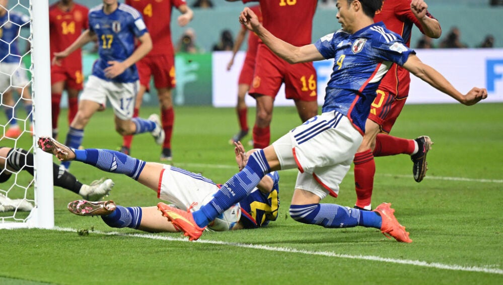 Minuto 51 del Japón-España. 1-1 en el marcador cuando Mitoma progresa hasta la línea de fondo y pone un balón para que Tanaka marque el 2-1, pero ese esférico parece que se ha marchado fuera.