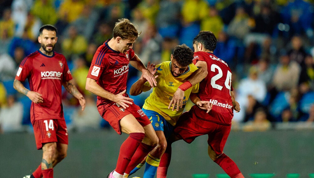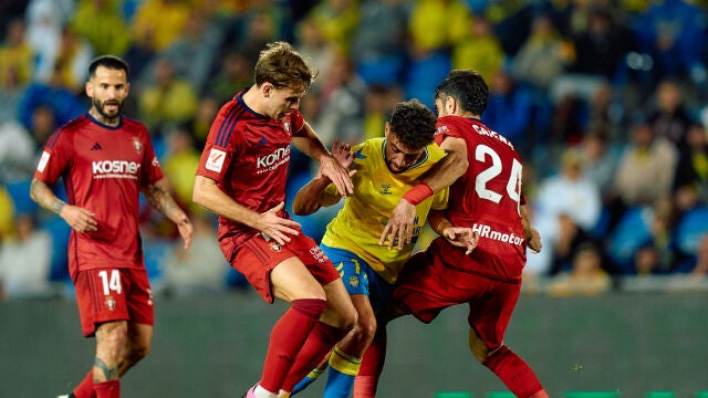 El empate, con el mismo resultado que se registró en la primera vuelta en El Sadar, frena en la clasificación a ambos equipos, que aspiraban a acercarse a la sexta plaza europea. Salió mejor el conjunto grancanario, fiel a su estilo de tener el balón e intentar atraer a los rivales, aunque Osasuna, con un esquema 1-5-3-2 capeó bien el temporal inicial sin demasiadas dificultades. Y lo hizo después de superar un primer susto, mayúsculo, cuando en un balón filtrado a Marvin Park, el guardameta Sergio Herrera salió a su paso y el mallorquín cayó en el área.