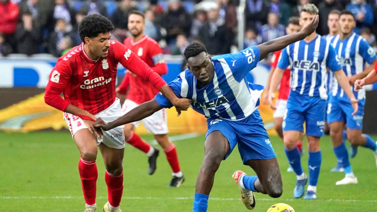 La UD Las Palmas salió vivo del asedio del Alavés, que perdonó infinidad de ocasiones para llevarse el partido, pero acabó perdiendo por 0-1 este sábado en Mendizorroza. Dos postes, dos goles anulados por el VAR y otros dos tantos salvados bajo palos por los insulares no fueron suficiente para superar el tanto de Kirian Rodriguez que logró sorprender a Antonio Sivera desde fuera del área en el minuto 31.