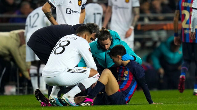 'Pedri' se tuvo que retirar este jueves lesionado en el minuto 40 del partido de ida de los dieciseisavos de final de la Liga Europa ante el Manchester United (2-2). Pese a que el club azulgrana no dio detalles sobre el tiempo de baja, algunas informaciones apuntaron que podría estar en el dique seco unas cuatro semanas.