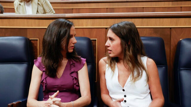 La ministra de Asuntos Sociales y Agenda 2030 en funciones y diputada de Sumar Ione Belarra y la ministra de Igualdad en funciones Irene Montero | EFE/Juan Carlos Hidalgo