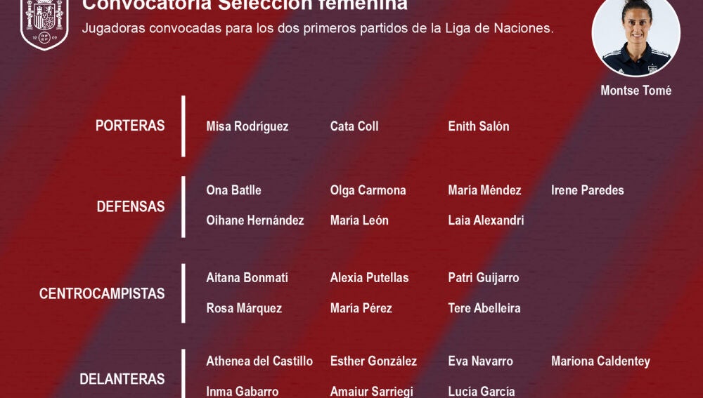 La seleccionadora nacional femenina fútbol, Montse Tomé, subrayó que "comienza una nueva etapa" y que el "contador empieza a cero" en su presentación oficial y el anuncio de su primera lista de 23 convocadas, en la que figura quince de las jugadoras campeonas del mundo, aunque no Jenni Hermoso para "protegerla", para las dos primeras jornadas de la Liga de Naciones contra Suecia y Suiza.