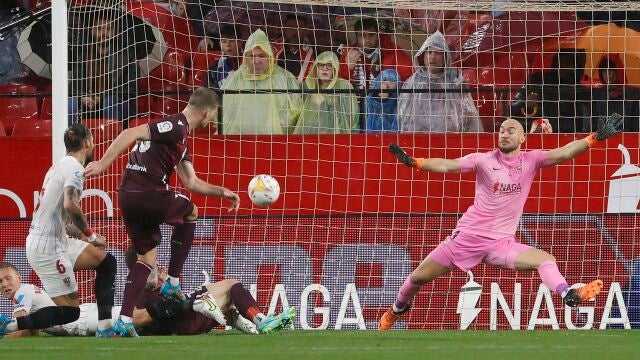 El Sevilla salió con una velocidad más pero siempre se encontró con muchas dificultades para poner en aprietos al meta Álex Remiro y a un sistema defensivo de la Real bien estructurado que, no obstante, tuvo que redoblar sus esfuerzos para que el rival no tuviera éxito y más con ya Youssef En-Nesyri en el campo en sustitución de un poco activo Martial.