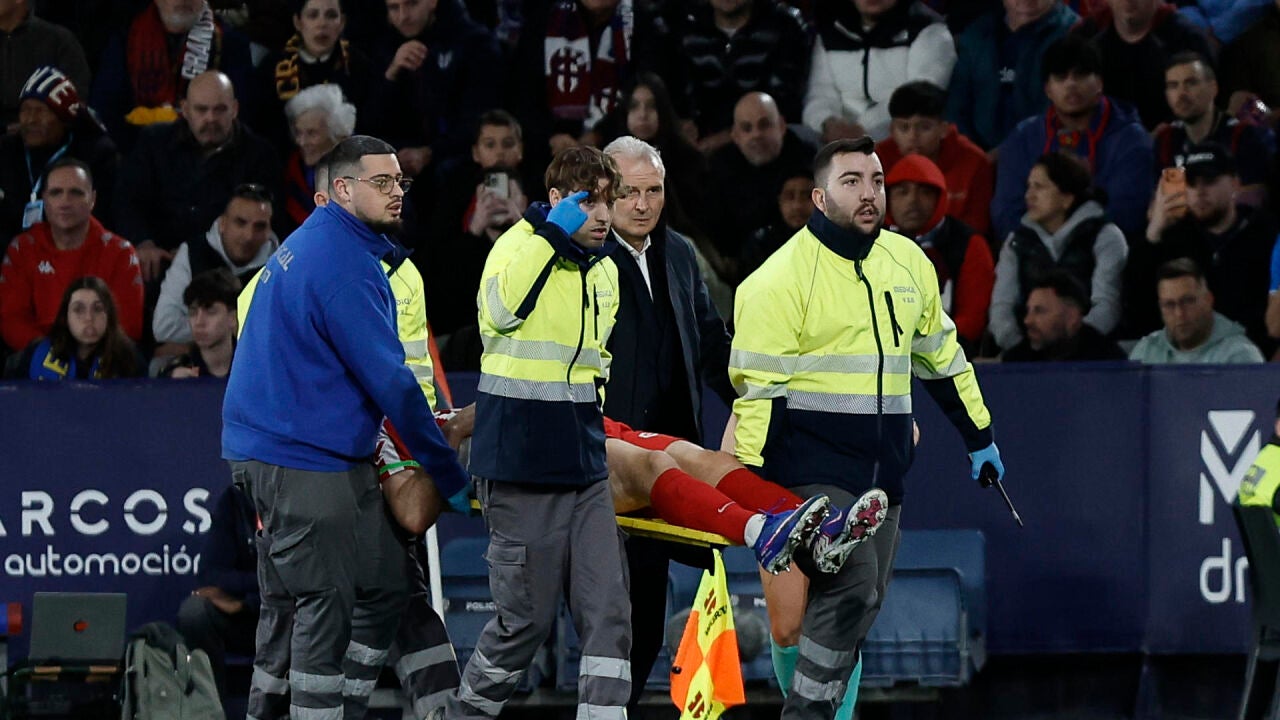 El delantero noruego Alexander Sorloth tuvo que ser retirado en camilla en el minuto 27 del partido entre el Atlético de Madrid y el Levante en el Ciutat de Valéncia, tras un brutal choque de cabeza con el argentino Matías Moreno.