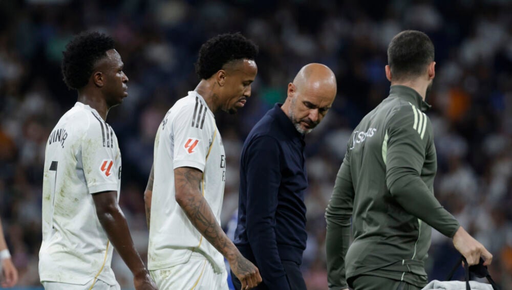 Militao, tras rematar un centro de Bellingham al larguero, pidió el cambio y fue sustituido por Rüdiger al filo del descanso. Las exploraciones médicas posteriores no diagnosticaron nada grave.