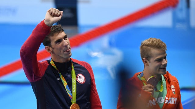 Una hora después, y tras previo paso por la ceremonia de medallas y breve celebración con su recién nacido Boomer, el laureado estadounidense se hizo con la vigesimoquinta presea olímpica gracias a la victoria del relevo estadounidense donde formó con otro mito como Ryan Lochte más Connor Dwyer y Francis Haas.