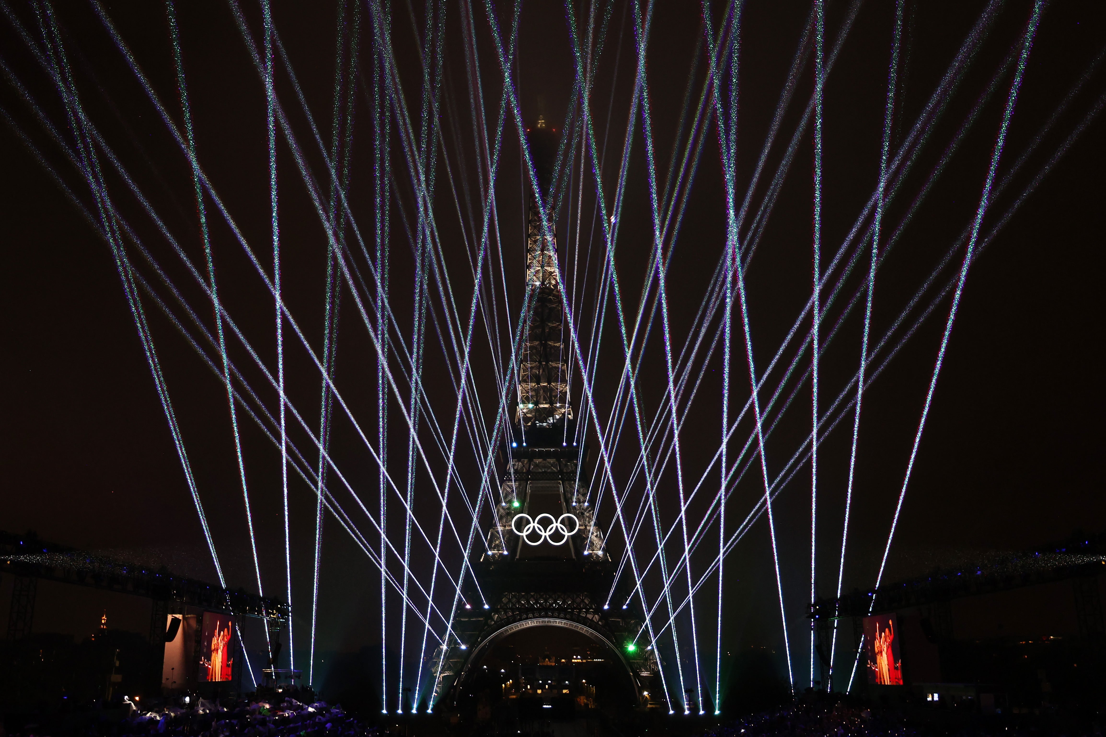 La lluvia ha estado presente durante toda la ceremonia y ahora se intensifica. Diluvia en París mientras el acto se centra ahora en la plaza de Trocadero. Se entregan los laureles olímpicos, en honor a los refugiados, y comienza el discurso del Comité Olímpico Internacional.