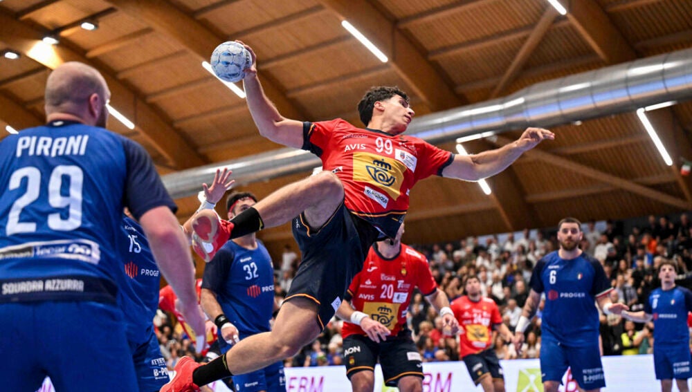 En la ciudad de Fasano, sobre la cancha del Palazzetto dello Sport, los pupilos de Jordi Ribera respondieron al buen inicio del combinado italiano y se despegó en el marcador (5-9) gracias a dos goles de Aleix Gómez en carrera. Un 7 metros transformado por Leo Prantner cortó la racha de los 'Hispanos' y luego Giacomo Savini se animó en ataque.