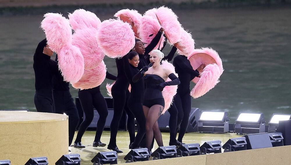 La cantante estadounidense Lady Gaga salió de una estación de metro típicamente parisina, construida para la ocasión junto al Sena, para ofrecer la primera gran actuación musical sorpresa de la ceremonia inaugural de los Juegos Olímpicos, con un número de cabaret.