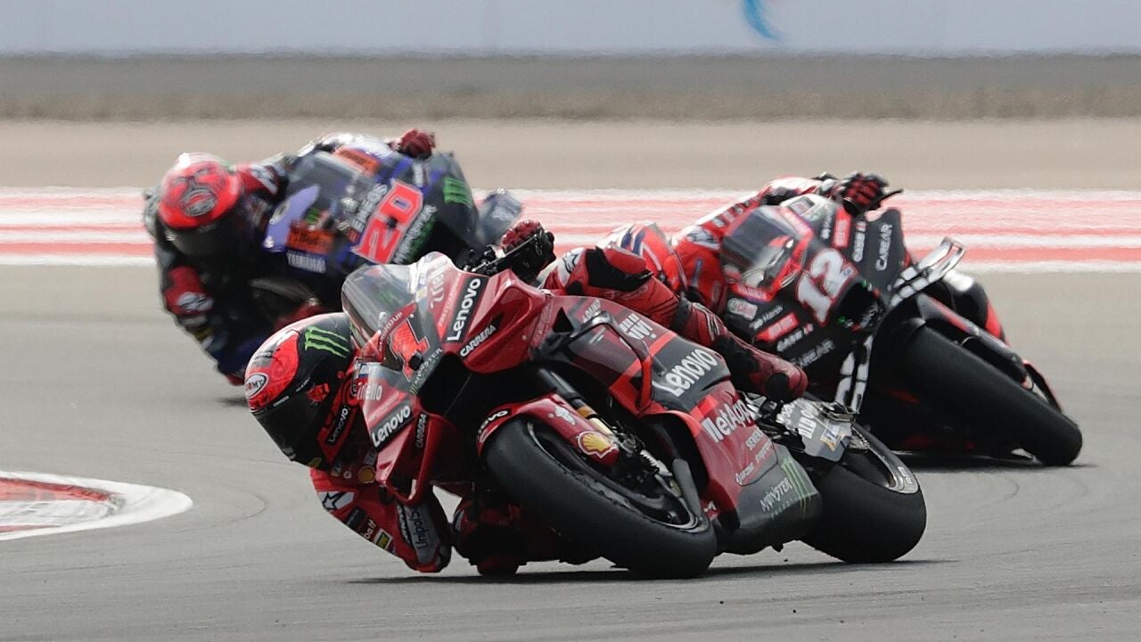 El italiano 'Pecco' Bagnaia recuperó el liderato del campeonato del mundo al aprovecharse de la caída de Jorge Martín cuando era líder del Gran Premio de Indonesia de MotoGP, en el que el español Pedro Acosta y el brasileño Diogo Moreira, vencieron en sus respectivas categorías.