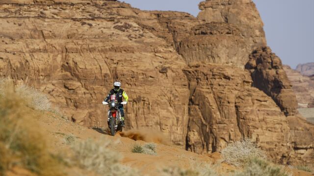 Falcón, de la categoría Original by Motul, se cayó en el kilómetro 448 de la especial de la segunda etapa y, alertados por un piloto que seguía al motorista, los organizadores enviaron un helicóptero, cuyo servicio médico atendió al motorista, herido grave tras caer con la cabeza sobre el suelo.
