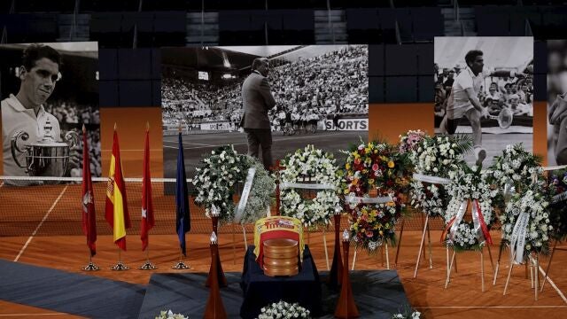 El féretro con los restos mortales del histórico tenista, que fue trasladado el domingo desde Marbella -donde falleció-, está situado en el centro de la pista 'Manuel Santana' que ha sido habilitada para que todo aquel que quiera despedirse pueda acceder y estará abierta hasta las 20:00 horas de hoy.