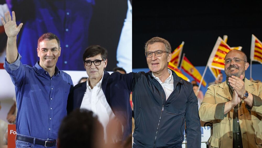 El presidente del Gobierno, Pedro Sánchez, y el líder del PP, Alberto Núñez Feijóo, se están volcando en la campaña de las elecciones catalanas del 12 de mayo, a la que han trasladado su pulso político y en la que el candidato del PSC, Salvador Illa, centra el debate sobre pactos poselectorales.