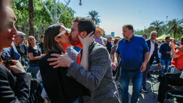 El presidente de la Generalitat de Catalunya, Pere Aragonés, junto a su mujer durante el acto de ERC ‘Festa de la República’, en Barcelona. | EP