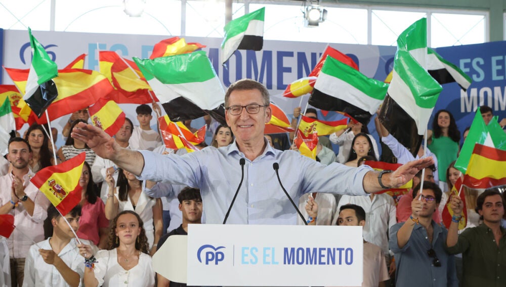 El líder del PP, Alberto Núñez Feijóo, en un acto electoral en Extremadura | EFE