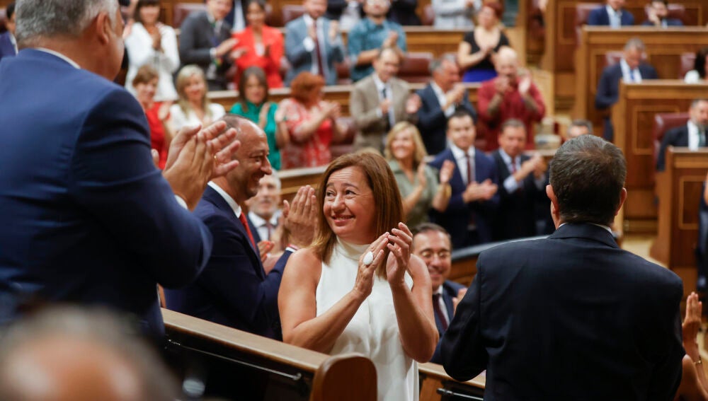 La expresidenta de Baleares, y diputada del PSOE, Francina Armengol, ha sido elegida presidenta del Congreso con el apoyo de 178 diputados, superando así la mayoría absoluta necesaria en primera vuelta gracias a los votos de Junts y del resto de socios parlamentarios de Pedro Sánchez.