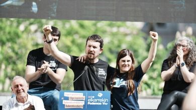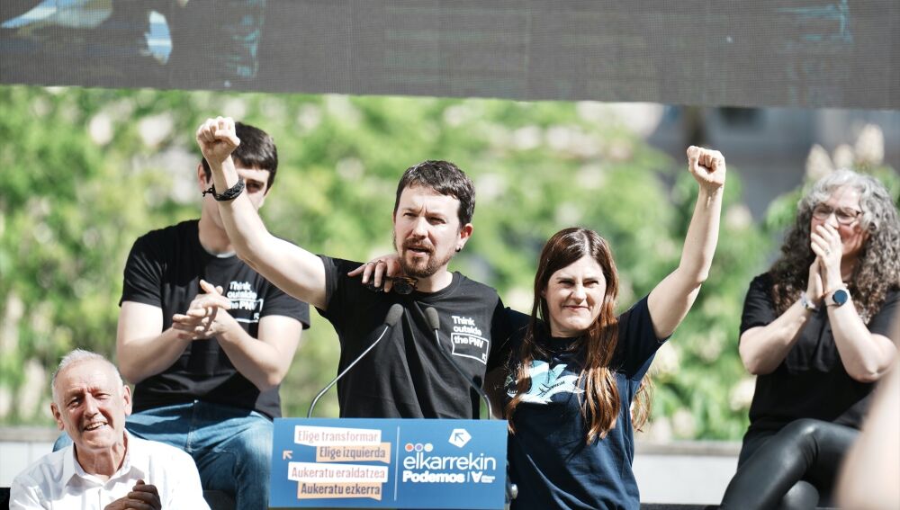 El ex secretario general de Podemos Pablo Iglesias y la candidata de Elkarrekin Podemos, Miren Gorrotxategi | H.Bilbao / Europa Press