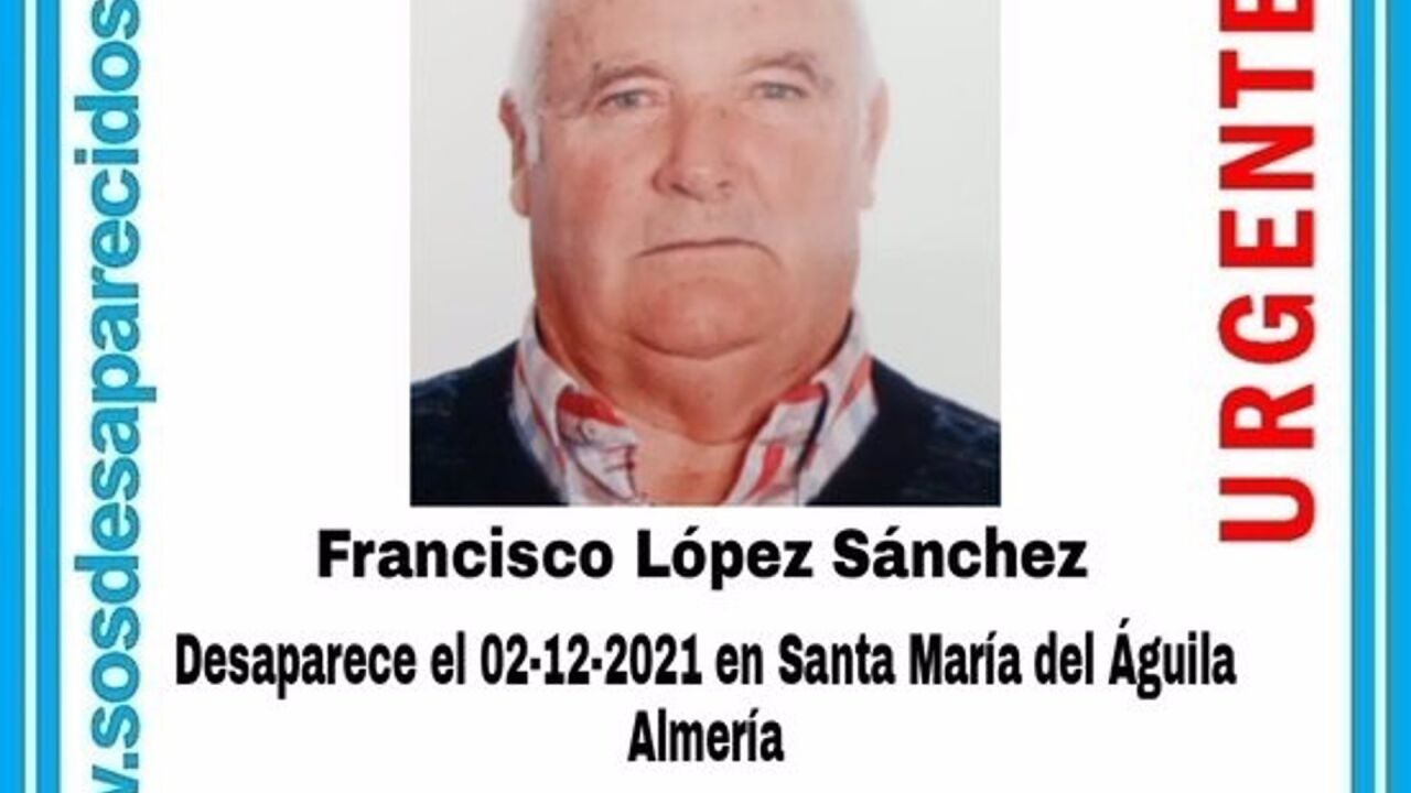 Francisco López Sánchez permanece desaparecido desde el día 2 de diciembre y en su búsqueda están participando policías locales, efectivos de Protección Civil, Cruz Roja, emergencias, vecinos, y voluntarios.