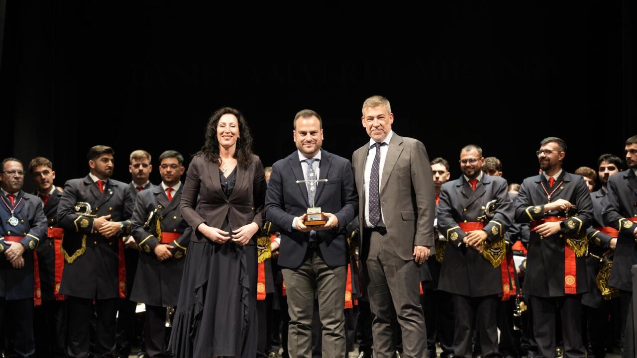 Los Premios Guion Cofrade arrancaron con el sonido de la marcha Añoranza, una composición propia de la Banda de Cornetas y Tambores Santa Cruz a la que le puso letra el pregonero de este 2026, Daniel Valverde Miranda, pretendiendo los presentadores del acto, que fueron Alberto Sentís y Javi Gálvez, colaboradores del programa de Onda Cero, simbolizar ese sentimiento que invade a los amantes de la Semana Santa una vez que ha entrado en su templo la última de las hermandades: la añoranza por lo vivido atrás y el deseo de la pronta llegada de la siguiente estación de penitencia.