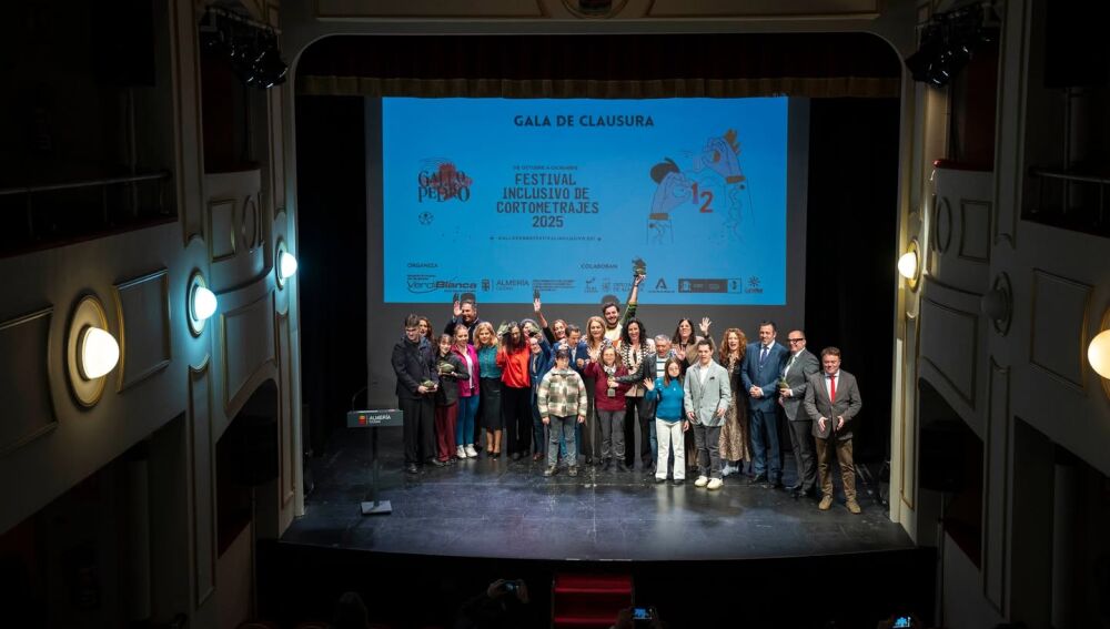 Este domingo pasado, el Festival Inclusivo de Cortometrajes Gallo Pedro, pionero en Andalucía y considerado un referente en toda España, cerró con gran éxito su duodécima edición con una emocionante Gala de Clausura en el Teatro Apolo de Almería, ante un auditorio lleno y entregado. El certamen, impulsado por la Asociación de Personas con Discapacidad Verdiblanca, ha consolidado su impacto cultural y social tras tres meses de intensa programación que ha incluido proyecciones, exposiciones, cinefórum, talleres y actividades participativas.
