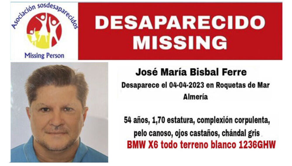 Alrededor de las 13:00 horas la Guardia Civil ha podido localizar en el municipio de Roquetas de Mar, Almería, a José María Bisbal Ferre, hermano del cantante almeriense David Bisbal.