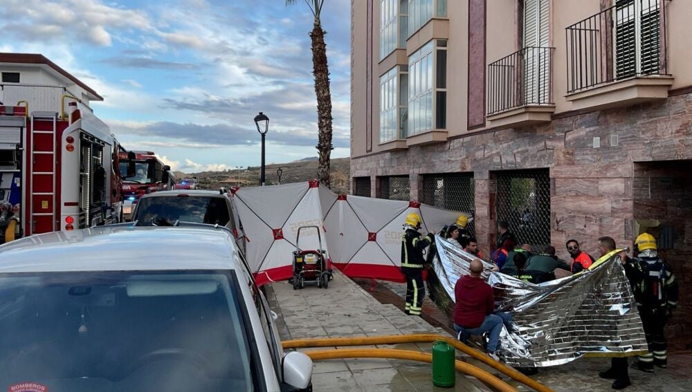 La mujer presentaba síntomas de intoxicación por inhalación de humo y diversas quemaduras, por lo que recibió oxígeno y primeros auxilios en el exterior del edificio hasta la llegada de los servicios sanitarios del Hospital de La Inmaculada de Huércal-Overa.