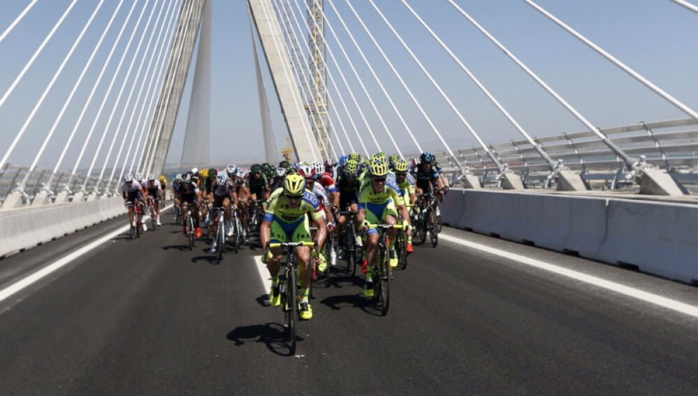 El pelotón de la Vuelta Ciclista a España pasa por el Puente de la Constitución de Cádiz | Efe