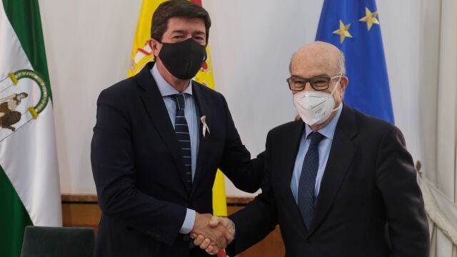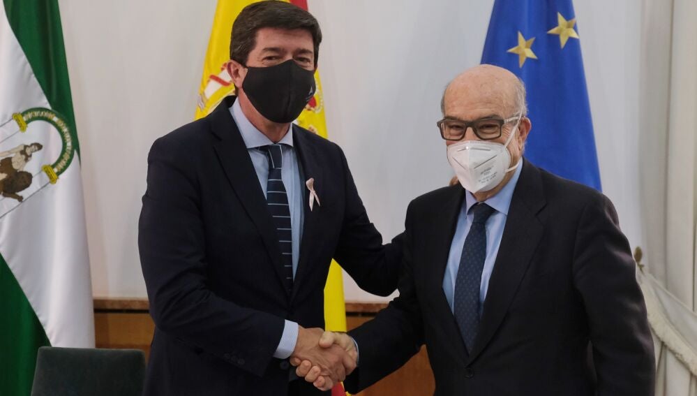 El vicepresidente de la Junta de Andalucía y consejero de Turismo, Juan Marín, y el responsable de Dorna Sports, Carmelo Ezpeleta, gestora de los derechos del campeonato de Moto GP, han firmado el acuerdo que garantiza la celebración del Gran Premio de España del Circuito de Jerez Ángel Nieto durante "al menos" tres ediciones más en las próximas cuatro temporadas. Un acuerdo para Juan Marín "muy valioso" y que refrenda la apuesta de la Junta para la celebración de grandes eventos deportivos.