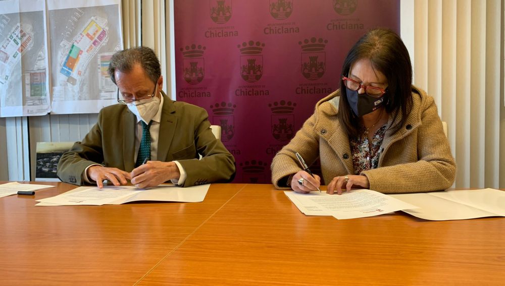 El alcalde de Chiclana, José María Román, y la representante de los vecinos de las barriadas de Caja de Ahorros, Fermesa y Recreo San Pedro, Paqui Guerrero, han firmado una carta por la que informan a la consejera de Fomento, Infraestructura de Ordenación del Territorio, Marifrán Carazo, del acuerdo plenario alcanzado la pasada semana de forma unánime, por el que la Corporación municipal solicita a la administración autonómica la financiación necesaria que permita actuar en todos los edificios del área de rehabilitación integral, que abarca a las tres barriadas ya mencionadas. De esta forma, el objetivo es que la Junta pueda añadir un suplemento extra de 1,8 millones de euros a los 3,2 previstos inicialmente, de cara a que las 300 familias excluidas de las ayudas de las 511 existentes en esta zona de Chiclana también puedan disponer de ascensores.